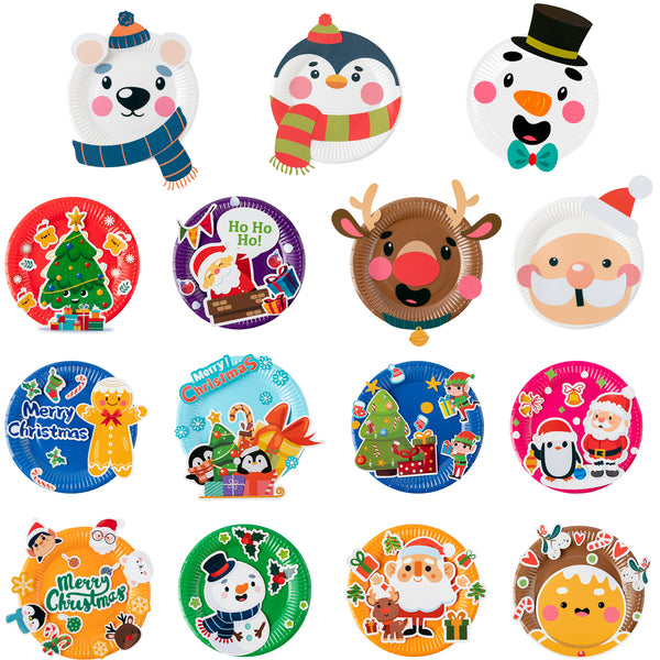 - What's inside-7inch DIY paper plate set*15:4*white, 2*orange, 2*brown, 2*dark blue, 1*light blue, 1*green, 1*rose red, 1*red, 1*deep Purple; 7.8*8.7inch Christmas theme pattern card paper *16;Die-cut patterns*15; Reference picture*1; 250g White card; 1 roll of double-sided tape.