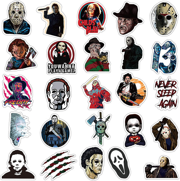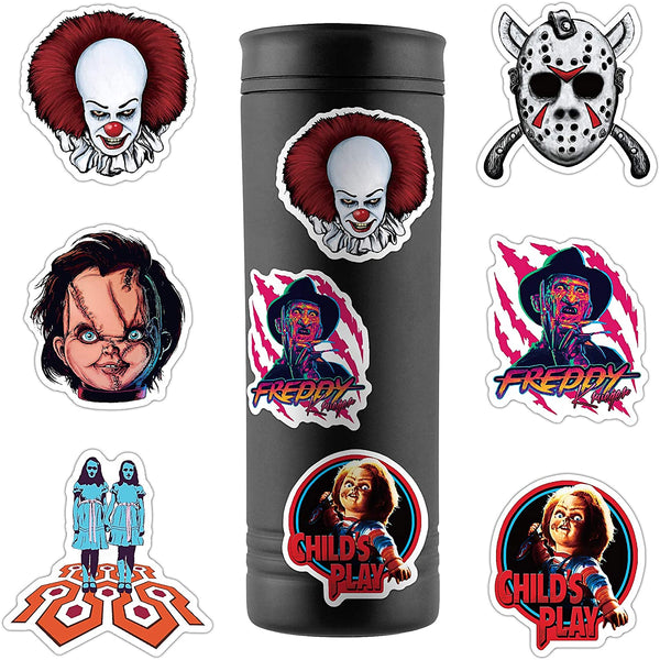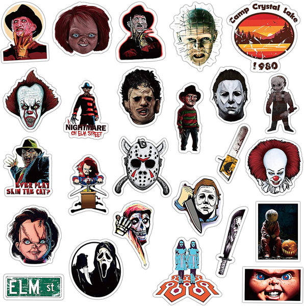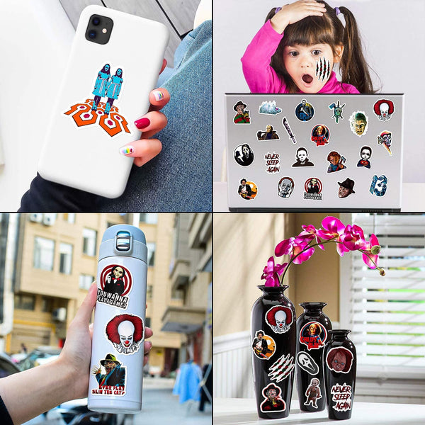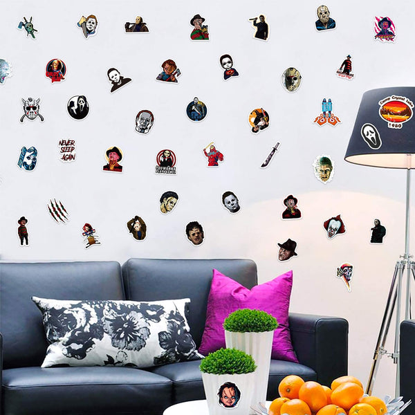 - HUGE QUANTITY SET : Great value 50pcs random stickers in different styles set can meet your various decoration needs! Decorate your items, walls and rooms with this horror movie characters vinyls stickers to show your unique style.