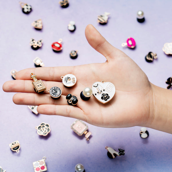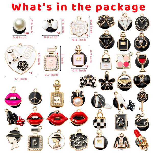- What’s in the package - Package comes with 40pcs cartoon style make up enamel pattern shoe charms and 10 beautiful pearls, all packaged in a white box. The product is made of metal, colorful and stylish as shown, fitting your shoes easily.