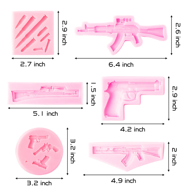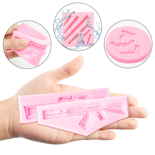 - [Good helper for baking items] Imitation pistol shaped machine gun silicone molds is the kitchen baking indispensable props. It can be used to make fondant, candy, chocolate etc to decor your cake or cupcake which will looks more exquisite and leaving an unforgettable memories with your family.