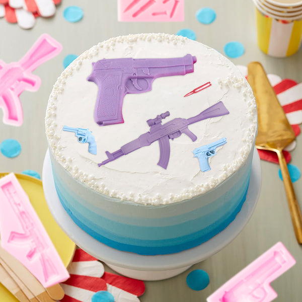 - [Lovely design] 4 different styles of imitation pistol shaped machine gun silicone molds. The shape and size are not the same. According to your favorite color, you can design a unique style of pastry decoration that catch everyone's attention.