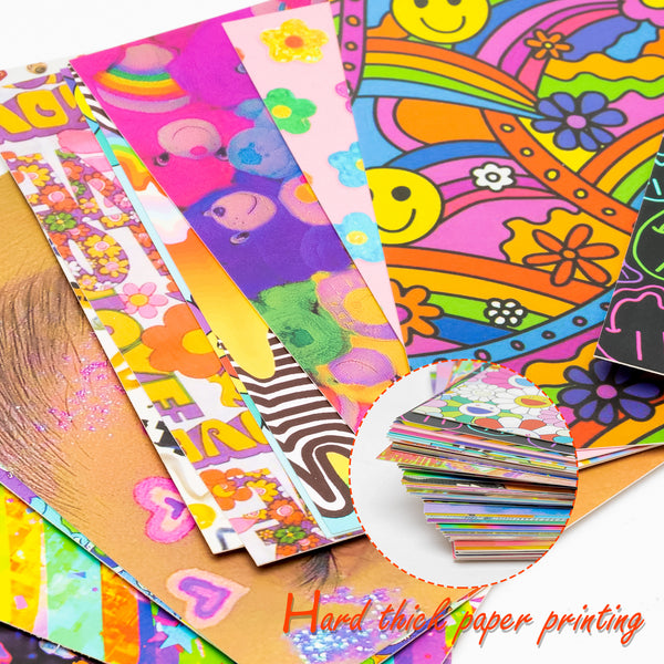 Contains 50pcs 4x6 inch indie kidcore hippie aesthetic pictures, 12pcs double layer colorful simulation butterfly.