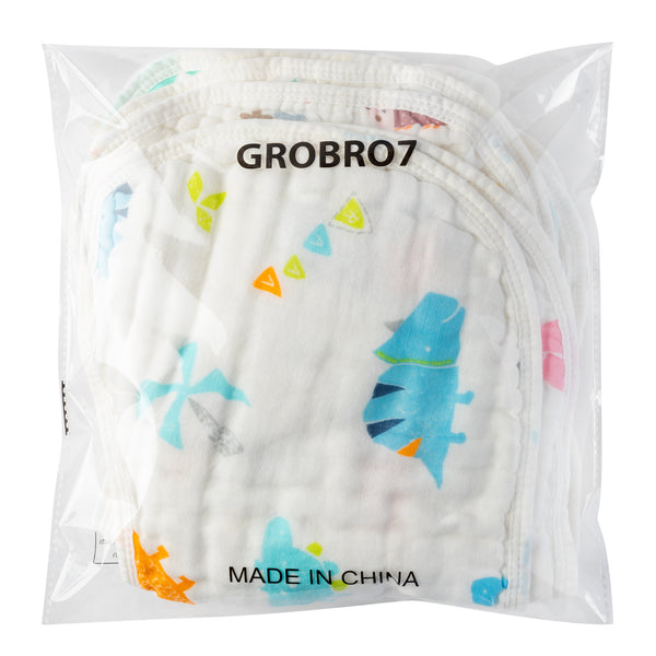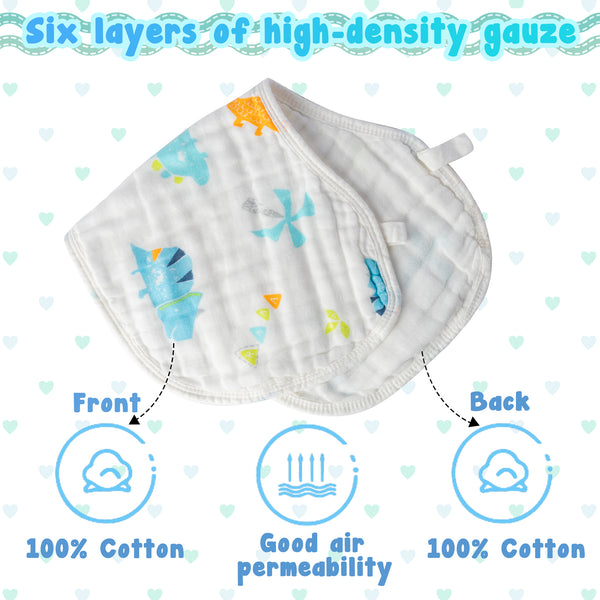 Baby Muslin Burp Cloths Burping Bids for Baby Cotton Cloths Absorbent for Baby Shower Machine Washable Soft Animals Zoo Honey Bear Dinosaur Face Towels Nursery Gift Gentle for Newborn Boys , 5Pcs