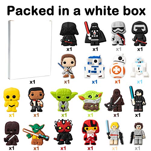 - What’s in the package - Package comes with 20pcs cartoon style SW pattern shoe charms, all packaged in a white box. The product is colorful and stylish as shown, fitting your shoes easily.