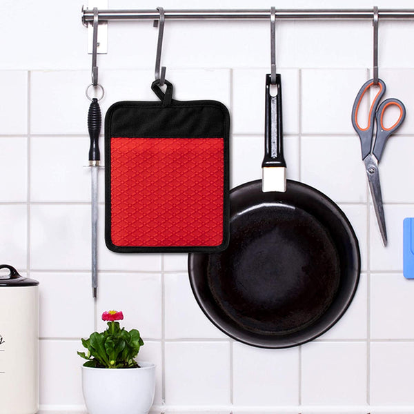 Package: 4 x Cotton Cloth Silicone Potholders (red).