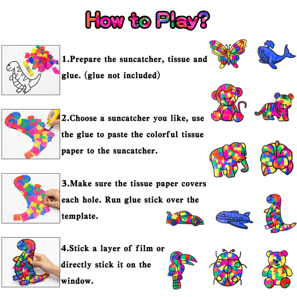 - Wide Application - DIY suncatcher set is suitable for spring crafts, summer crafts, party window decals, school class craft props, and indoor decoration. These cute patterns are also an ideal gift for kids' birthday and party supplies.