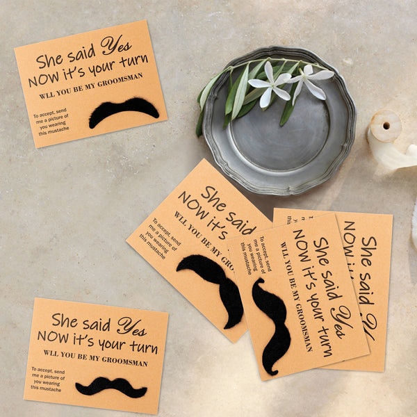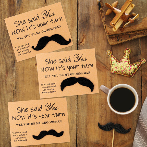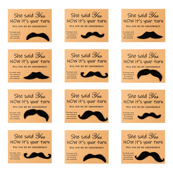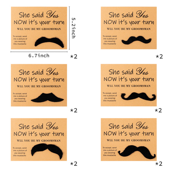 Value Package - Set of 12pcs groomsmen proposal cards, which include 6 styles humorous mustaches, suitable for wedding, proposal scene, unburden ceremony, etc.