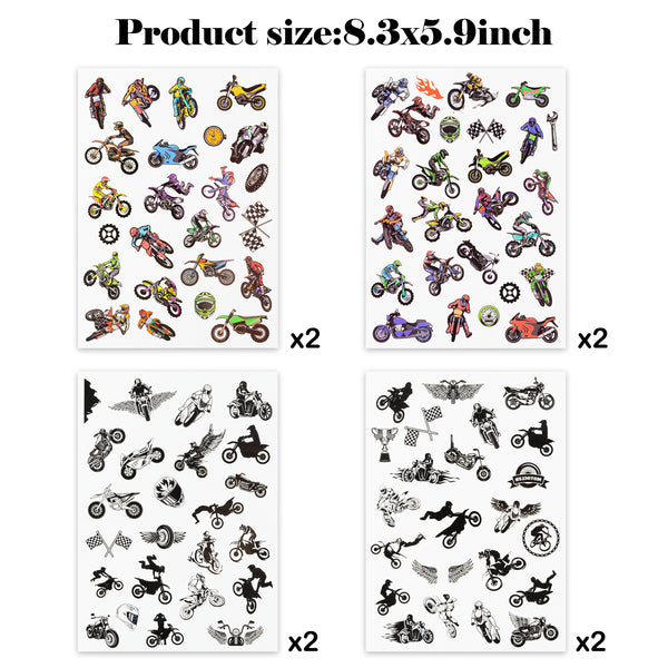 - - Value Package - Package Include 8 sheet dirt bike tattoos, which can be used wherever you want, such as arms, face, and hands.