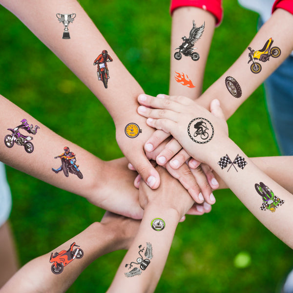 - - Gifts and Decorations - This tattoos is full of energy and can be apply to your body or some smooth objects, also can be used in various occasions, such as dirt bike theme birthday party supplies/DIY decorations/favors, a gift or reward for kids.