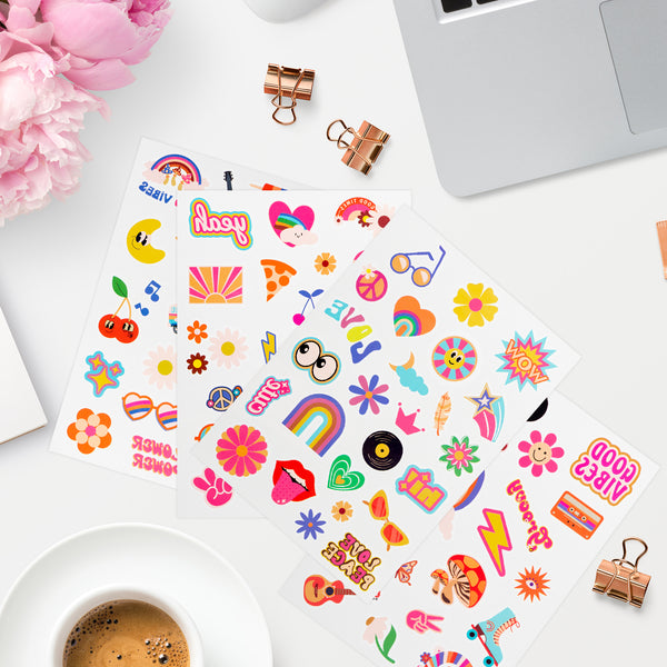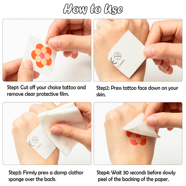 - Tips for Tattoos - Our cute 70’s groovy temporary tattoos are made of non-toxic material. And the usage method is attached in the picture. (As Picture 3 Shown)